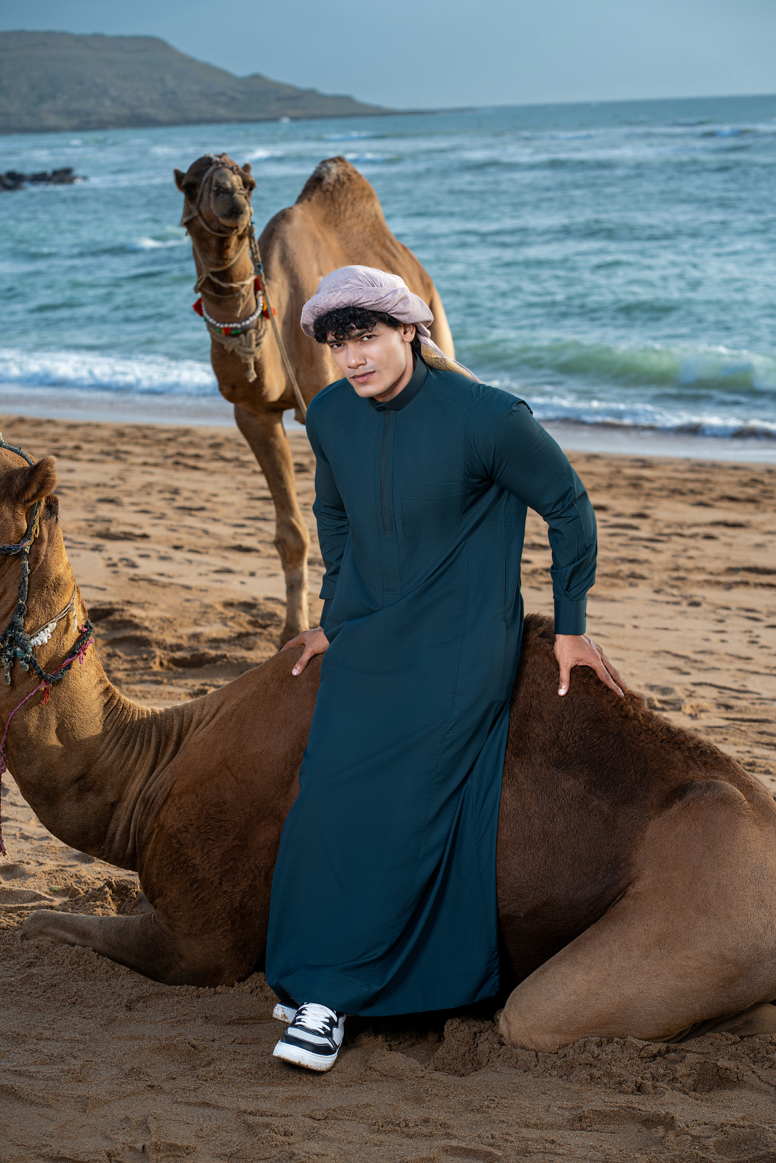 Experience refined sophistication with our Blue Saudi Shirt Collar Thobe. Crafted from Premium Wash & Wear Boski Finish fabric, it features a sleek collar, cuffed sleeves, and impeccable stitching — embodying timeless elegance and modern class.