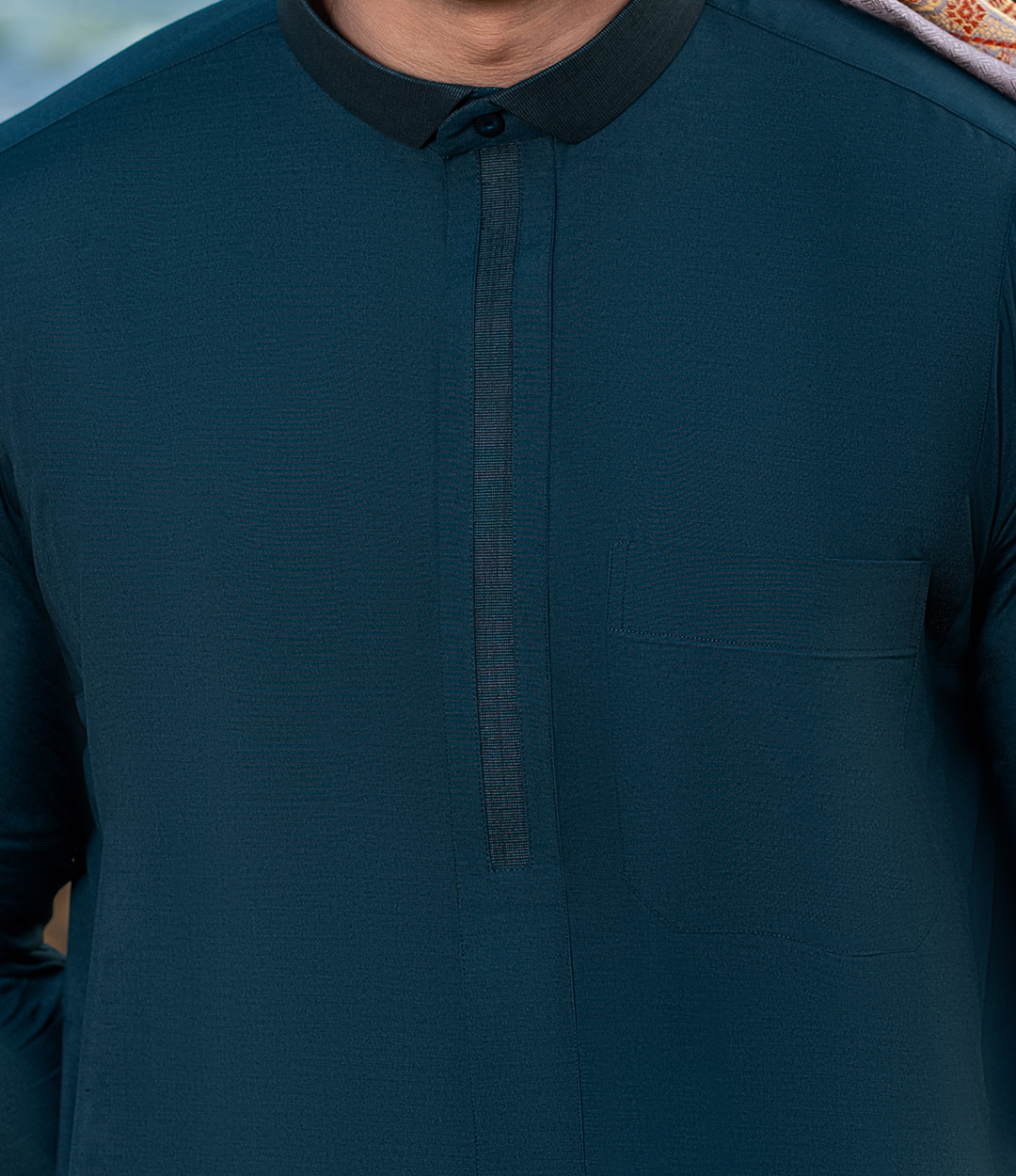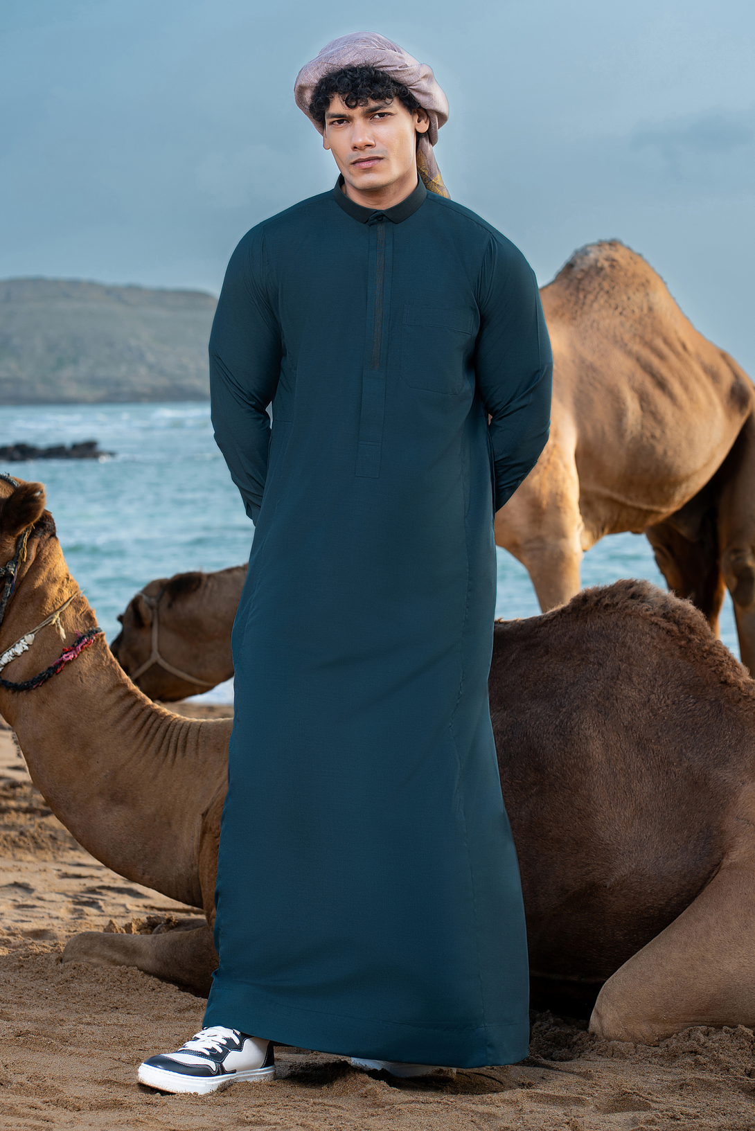 Blue Saudi Shirt Collar Thobe - Exude Elegance