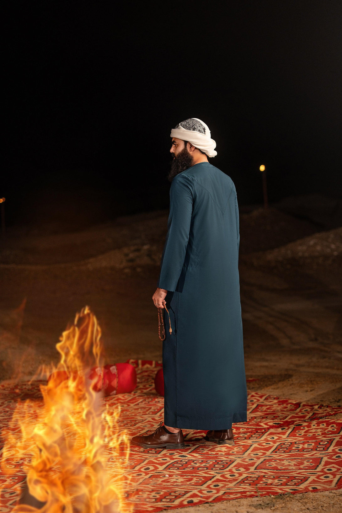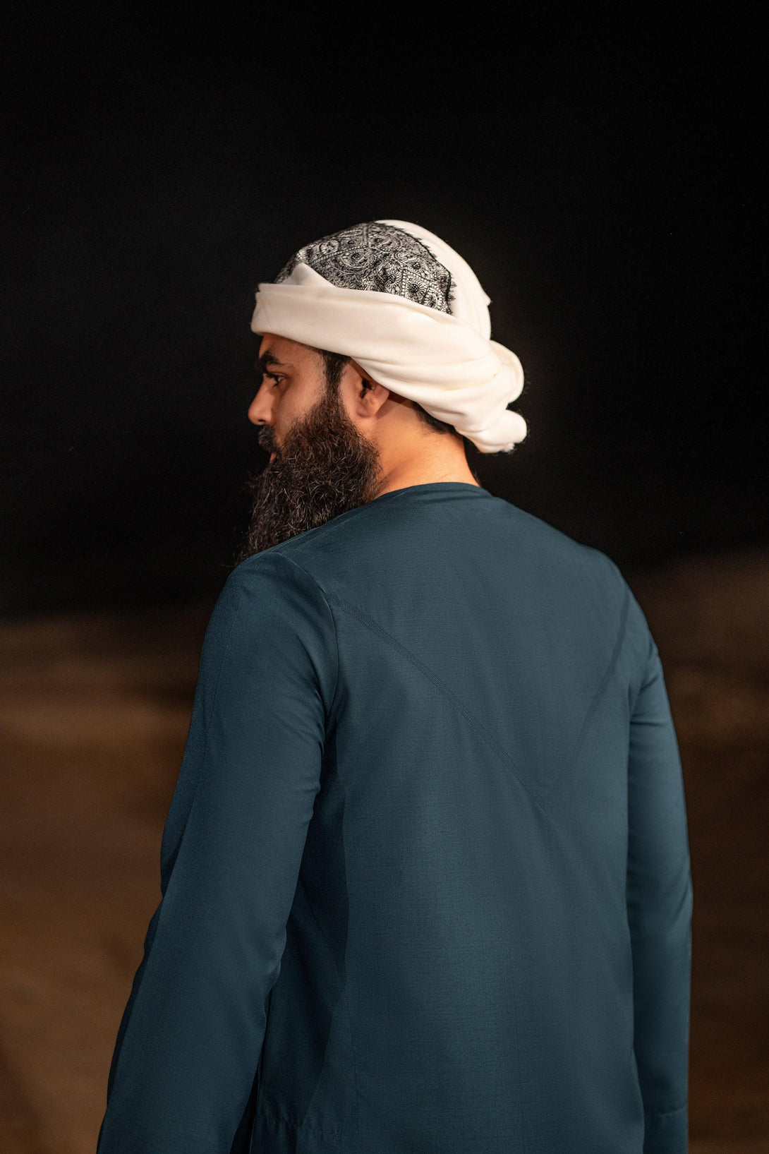 Experience refined sophistication with our Dark Emerald Green Omani Kandura. Crafted from Premium Wash & Wear Thai Boski Finish fabric. It features a classic , signature Omani design, and impeccable stitching. A timeless expression of elegance and class.