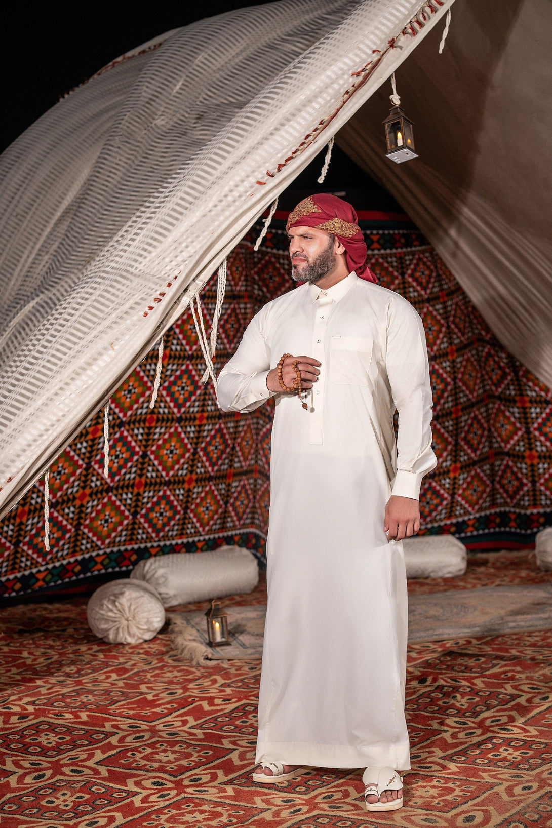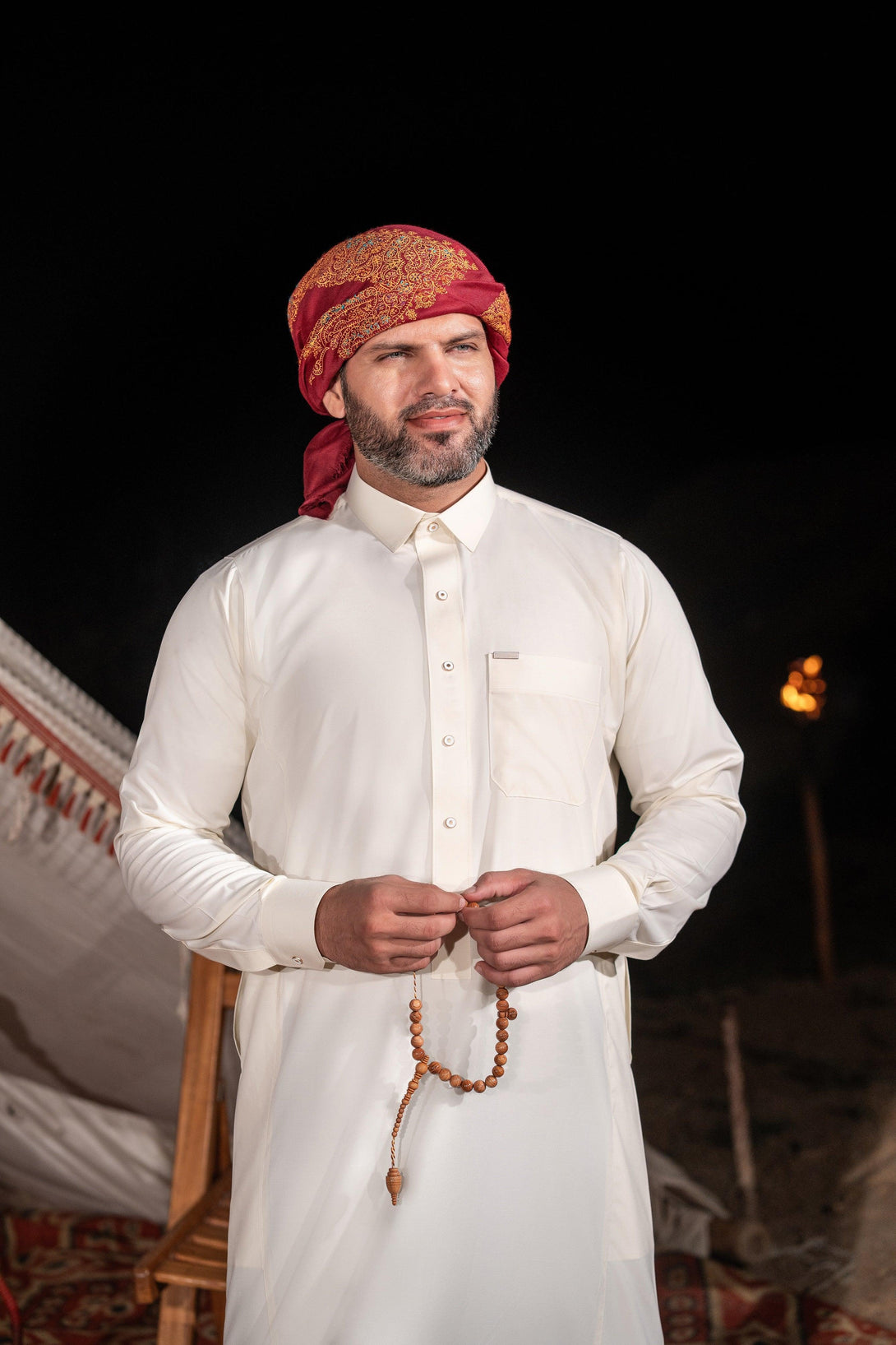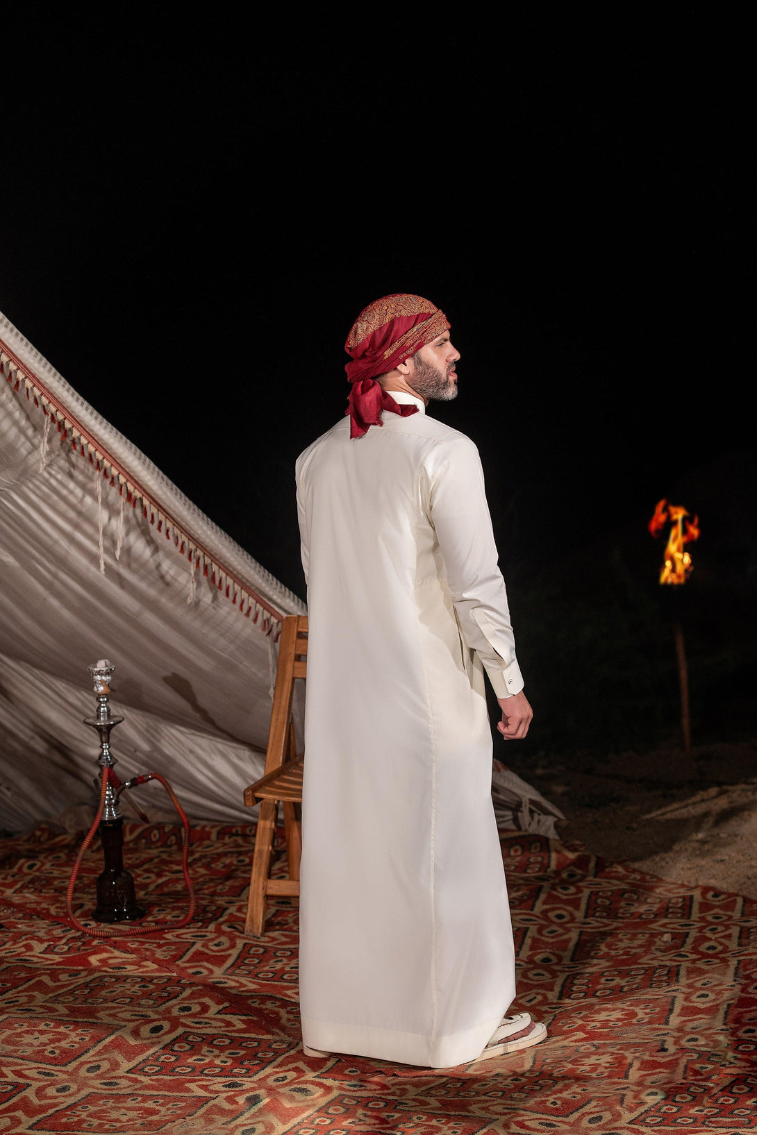 Cream Saudi Shirt Collar Thobe - Exude Elegance