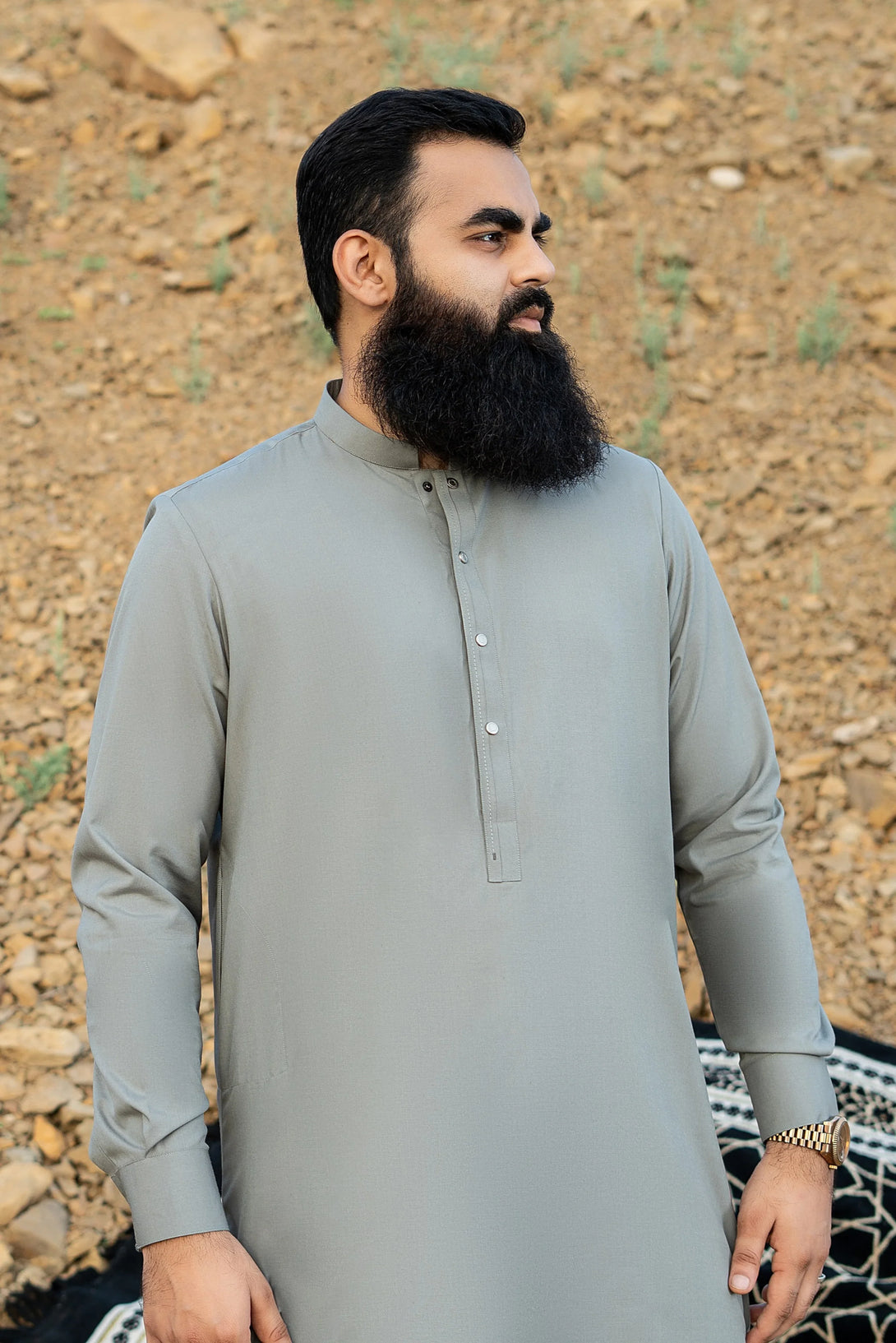 Immerse yourself in sophistication with our Gray Kurta Pajama. Crafted from Premium Wash & Wear Boski-Finish fabric for ultimate comfort and style. Featuring elegant button detailing and refined premium stitching, it offers a perfect balance of modern grace and traditional craftsmanship. Designed for the man who values effortless elegance.