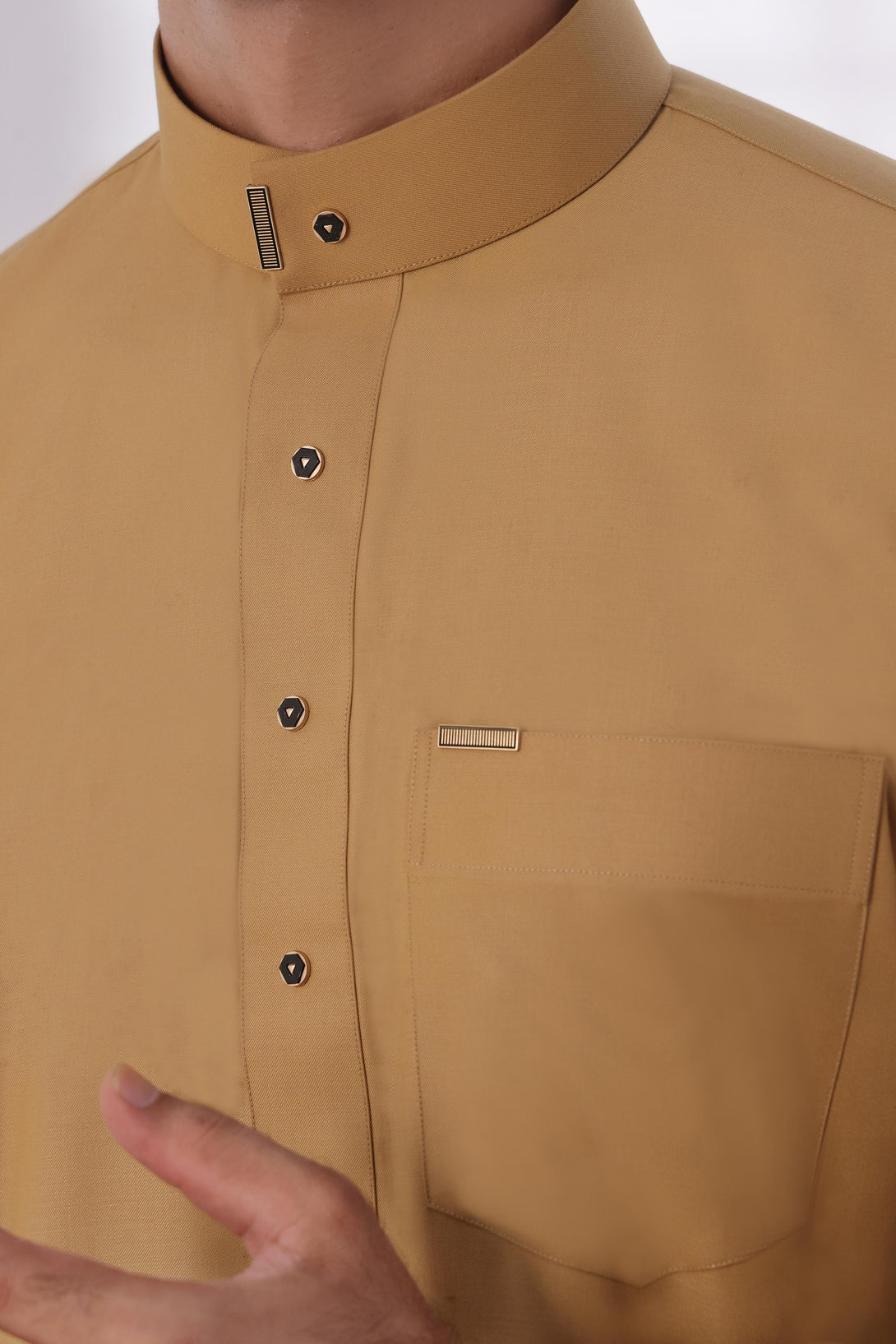 Camel Fawn Saudi Collar Thobe - Round Collar with hems
